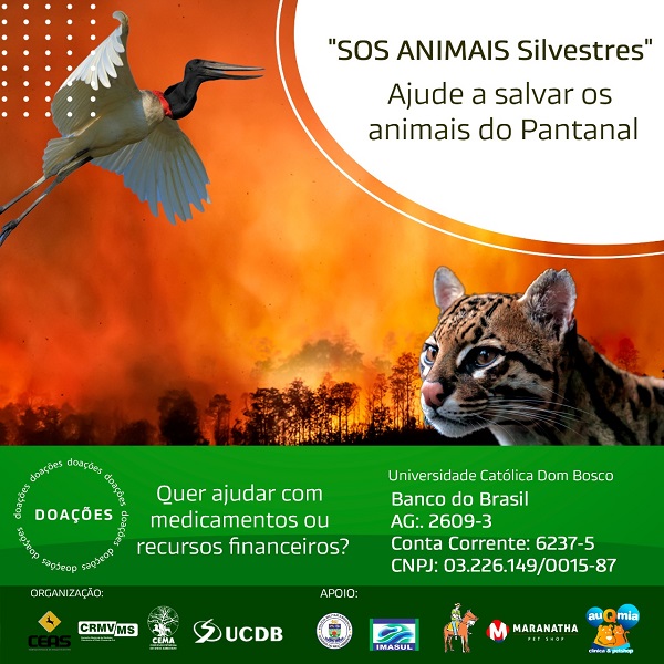 O Conselho Regional de Medicina Veterinária de Mato Grosso do Sul (CRMV-MS) por meio da Comissão Estadual de Animais Silvestres (CEAS) e da Comissão Estadual de Meio Ambiente (CEMA) lança a Campanha: “SOS Animais Silvestres” vítimas do incêndio no Pantanal Sul-mato-grossense.